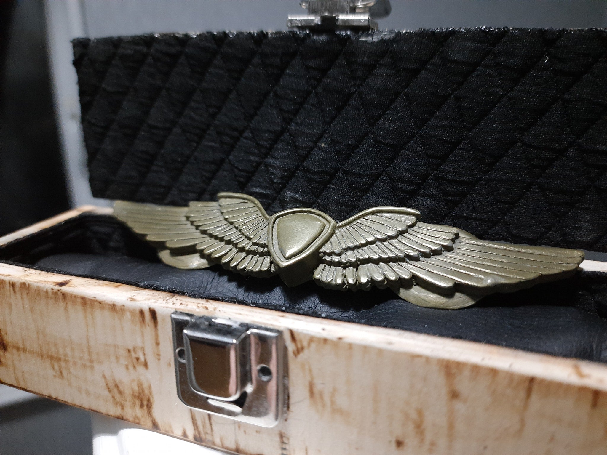 Cold cast in brass, this pin badge was made with an accompanying padded box for protection.